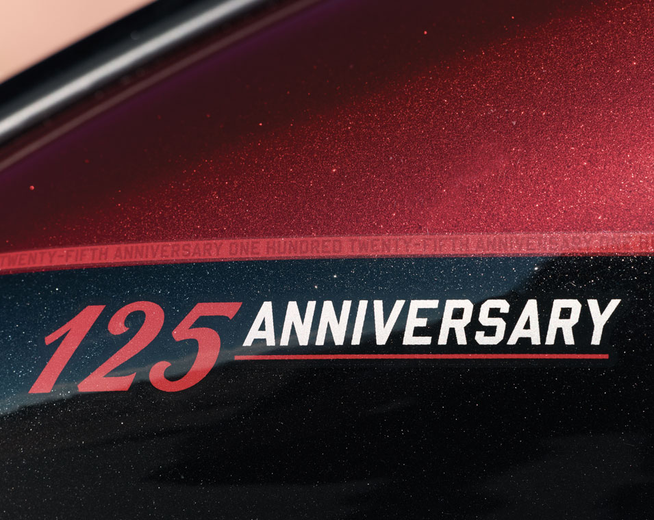 Roadmaster 125周年記念モデルは、ロングツーリングにおける“洗練の基準”として存在する一台です。 クラシックなアメリカンクラフトマンシップを惜しみなく注ぎ込み、車体全体には緻密な手描きディテールと125周年記念バッジが施されています。