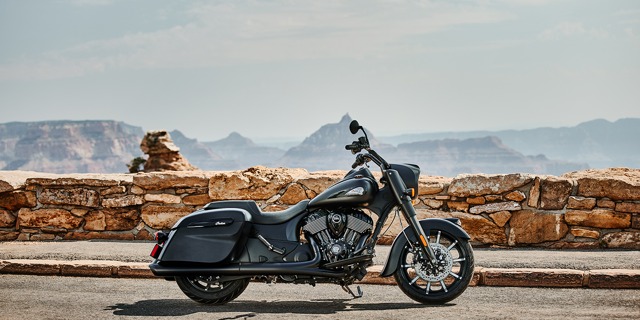 Indian Springfield Dark Horseは、より多くを求める人のためのモデルです。流線型のスタンス、パワフルなVツイン、不敵なスタイリングで、見た目通りの力強い走りを見せます。