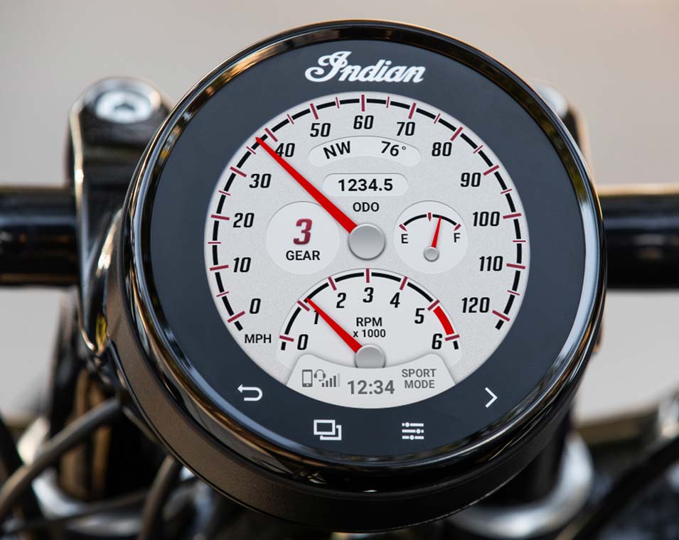 • インフォテインメント4インチディスプレイにRIDE COMMANDを搭載し、Bluetooth®接続、走行状態情報、その他の機能を備えています。